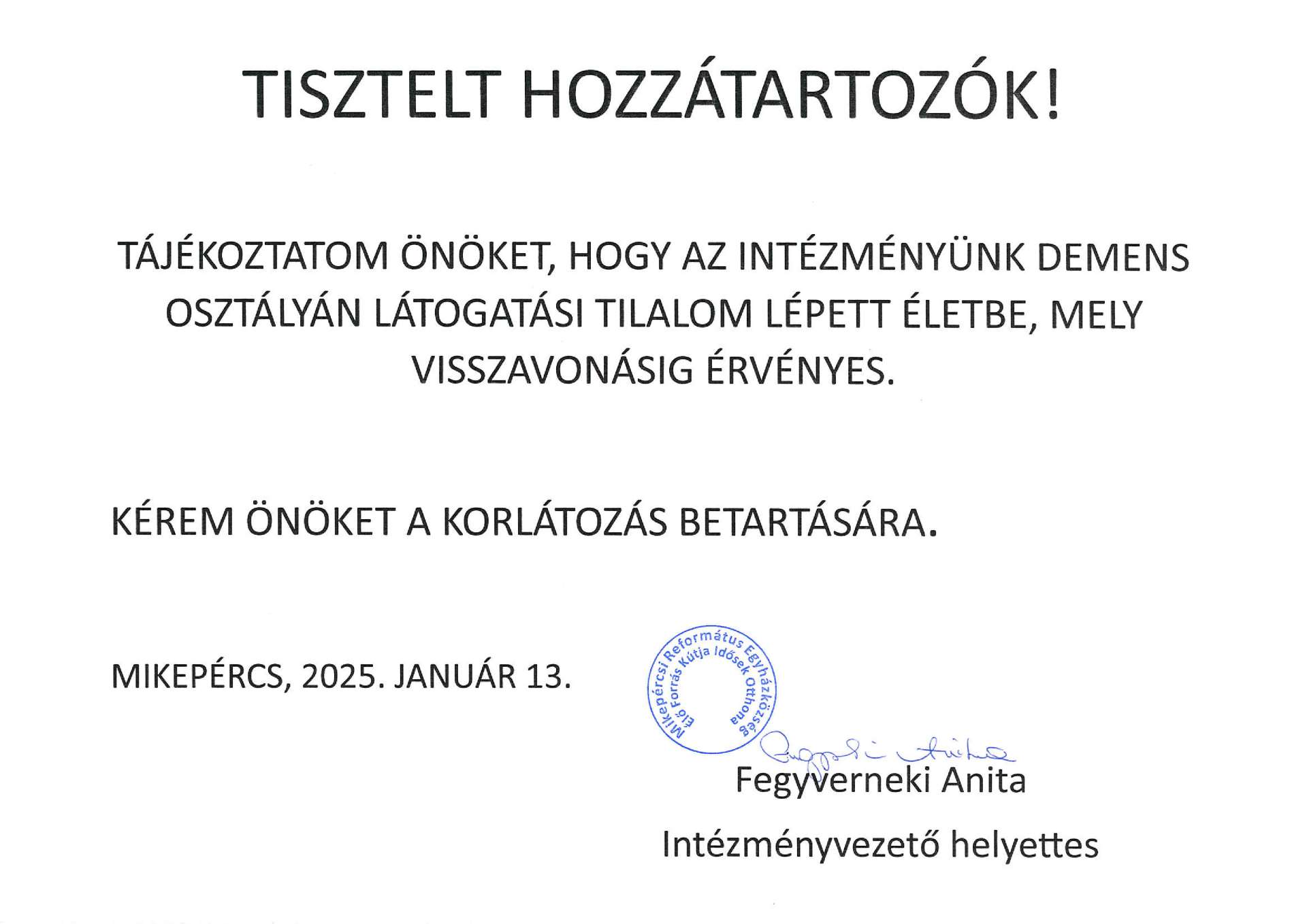 Demens o. látogatási tilalom