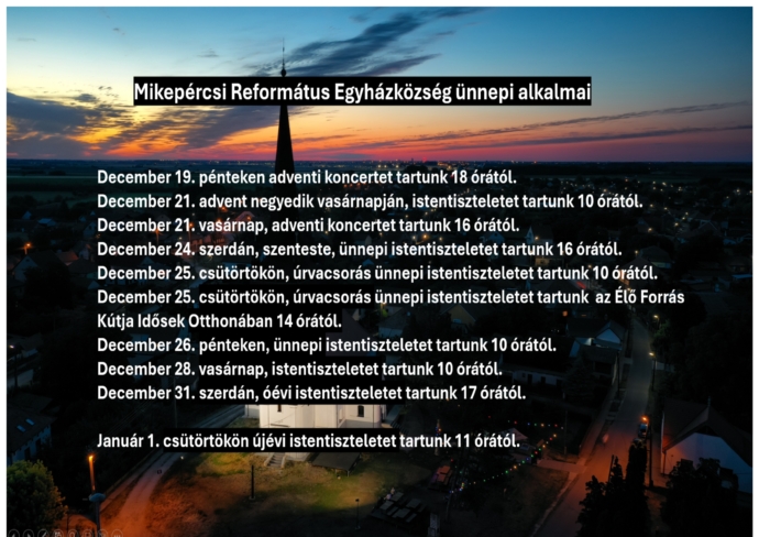 Elhangzott 2024.12.08-án a mikepércsi református templomban. Igét hirdetett Czapp József lelkipásztor.